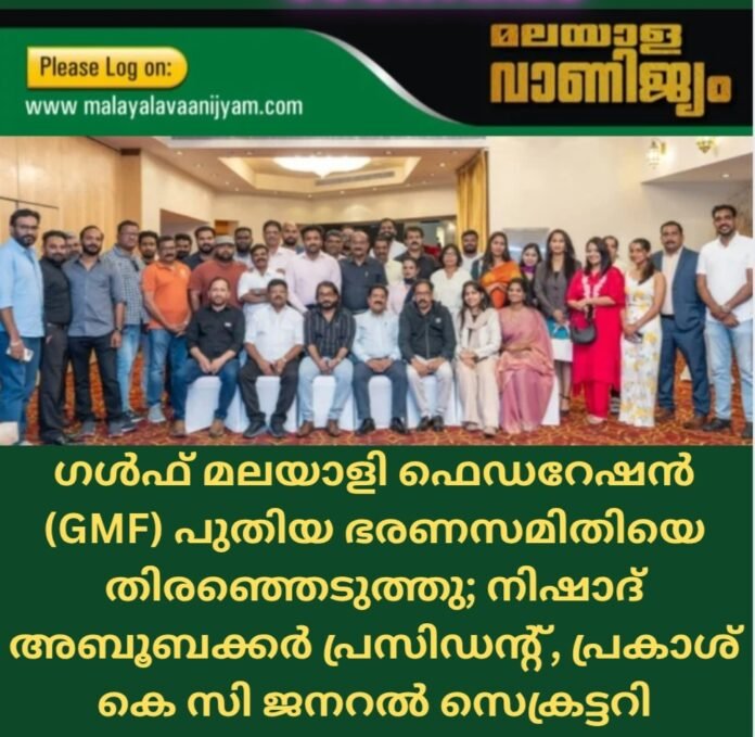 ഗൾഫ് മലയാളി ഫെഡറേഷൻ (GMF) പുതിയ ഭരണസമിതിയെ തിരഞ്ഞെടുത്തു; നിഷാദ് അബൂബക്കർ പ്രസിഡന്റ്, പ്രകാശ് കെ സി ജനറൽ സെക്രട്ടറി