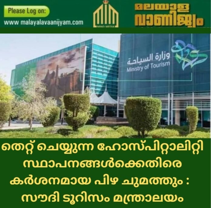 റിയാദ്:-തെറ്റ് ചെയ്യുന്ന ഹോസ്പിറ്റാലിറ്റി സ്ഥാപന ങ്ങൾക്കെതിരെ കർശനമായ പിഴ ചുമത്തും :സൗദി ടൂറിസം മന്ത്രാലയം. എല്ലാഹോസ്പി റ്റാലിറ്റി സ്ഥാപനങ്ങളും തങ്ങളുടെ ബിസിനസ് പ്രവർത്തനങ്ങളിൽ ഏർപ്പെടുന്നതിന് മുമ്പ് ലൈസൻസ് നേടുകയോ പുതുക്കുകയോ ചെയ്യണമെന്നും ടൂറിസം മന്ത്രാലയം അഭ്യർത്ഥിച്ചു. തെറ്റ് ചെയ്യുന്ന സ്ഥാപനങ്ങൾക്കെതിരെ 1 മില്യൺ റിയാൽ വരെ പിഴ, സൗകര്യങ്ങൾ അടച്ചുപൂട്ടൽ, അല്ലെങ്കിൽ ഇവ രണ്ടും ഉൾപ്പെടെയുള്ള കർശനമായ പിഴകൾ സ്വീകരിക്കുമെന്ന് മുന്നറി യിപ്പ് നൽകി. നിയമലംഘകരുടെ പേരുകൾ പ്രാദേശിക മാധ്യമ ങ്ങളിൽ അവരുടെ സ്വന്തം ചെലവിൽ പരസ്യപ്പെടുത്തും.സ്വകാര്യ സ്ഥാപനങ്ങൾ ഉൾപ്പെടെയുള്ള എല്ലാ ഹോസ്പി റ്റാലിറ്റി സൗകര്യങ്ങൾക്കും അവ യുടെ പ്രവർത്തനത്തിന് സാധുത യുള്ള ലൈസൻസ് ഉണ്ടായി രിക്കേണ്ട ബാധ്യത മന്ത്രാലയം ഊന്നിപ്പറഞ്ഞു. ഈ ബാധ്യത, ടൂറിസം മേഖലയ്ക്കുള്ള വ്യവ സ്ഥകൾ അനുസരിച്ച്, രാജ്യത്തിലെ വിനോദസഞ്ചാരികൾക്കും സന്ദർശകർക്കും നൽകുന്ന സേവനങ്ങളുടെ ഗുണനിലവാരം ഉറപ്പാക്കാൻ ശ്രമിക്കുന്നു. നിർബന്ധിത ലൈസൻസുകളോ പ്രവർത്തനാനുമതികളോ ഇല്ലാതെ പ്രാദേശിക, അന്തർദേശീയ ബുക്കിംഗ് പ്ലാറ്റ്ഫോമുകളിൽ തങ്ങളുടെ യൂണിറ്റുകൾ വിപണനം ചെയ്യുന്ന ചില ഹോസ്പിറ്റാലിറ്റി സൗകര്യങ്ങളുടെ ലംഘനങ്ങൾ മന്ത്രാലയം റിപ്പോർട്ട് ചെയ്തിരുന്നു.