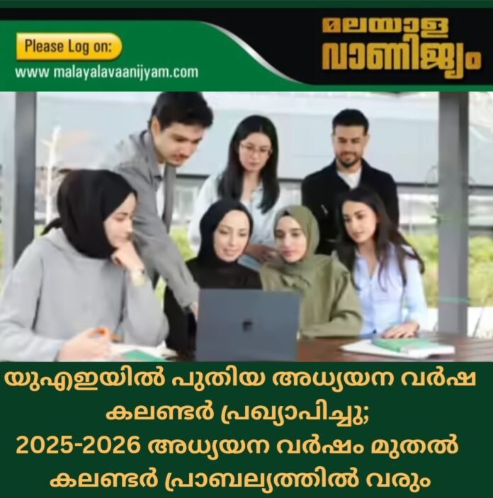 അബുദാബി :- യുഎഇയിൽ പുതിയ അധ്യയന വർഷ കലണ്ടർ പ്രഖ്യാപിച്ചു;2025-2026 അധ്യയന വർഷം മുതൽ കലണ്ടർ പ്രാബല്യ ത്തിൽ വരും.യുഎഇയിലെ എല്ലാ സർക്കാർ, സ്വകാര്യ സ്കൂളു കൾക്കും ബാധകമാകുന്ന പുതിയ ഏകീകൃത അക്കാദമിക് കലണ്ട റാണ് വിദ്യാഭ്യാസ മന്ത്രാലയം പ്രഖ്യാപിച്ചത്.2025-2026 അധ്യയന വർഷം മുതൽ പ്രാബല്യത്തിൽ വരുന്ന പുതിയ കലണ്ടർ പ്രകാരം, അധ്യയന വർഷം ആരംഭിക്കുന്ന തിനും, മൂന്ന് ടേമുകൾ അവസാനി ക്കുന്നതിനും, അവധിക്കാല ങ്ങൾക്കും ഇനി മുതൽ രാജ്യത്തുട നീളം ഒരേ തീയതികളായിരിക്കും. വിദ്യാഭ്യാസ, മാനവ വികസന കൗൺസിലിന്റെ അംഗീകാര ത്തോടെയാണ് പുതിയ കലണ്ടർ പുറത്തിറക്കിയത്.